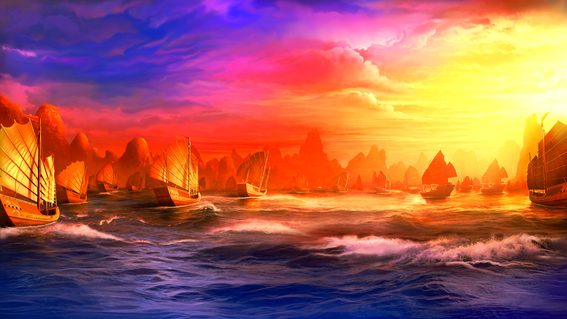 El conflicto se representa con todo lujo de detalles en la tragamonedas 3 Kingdoms – Battle of Red Cliffs. Tres generales chinos están enfrentados, y cada uno de ellos tiene una estrategia diferente para tomar las riendas y ganar. El cielo es sereno y brillante durante el día, mientras los barcos se mecen suavemente por el agua. Pero, por la noche, los barcos son sacudidos por las olas del océano mientras bolas de fuego encienden los buques de guerra.