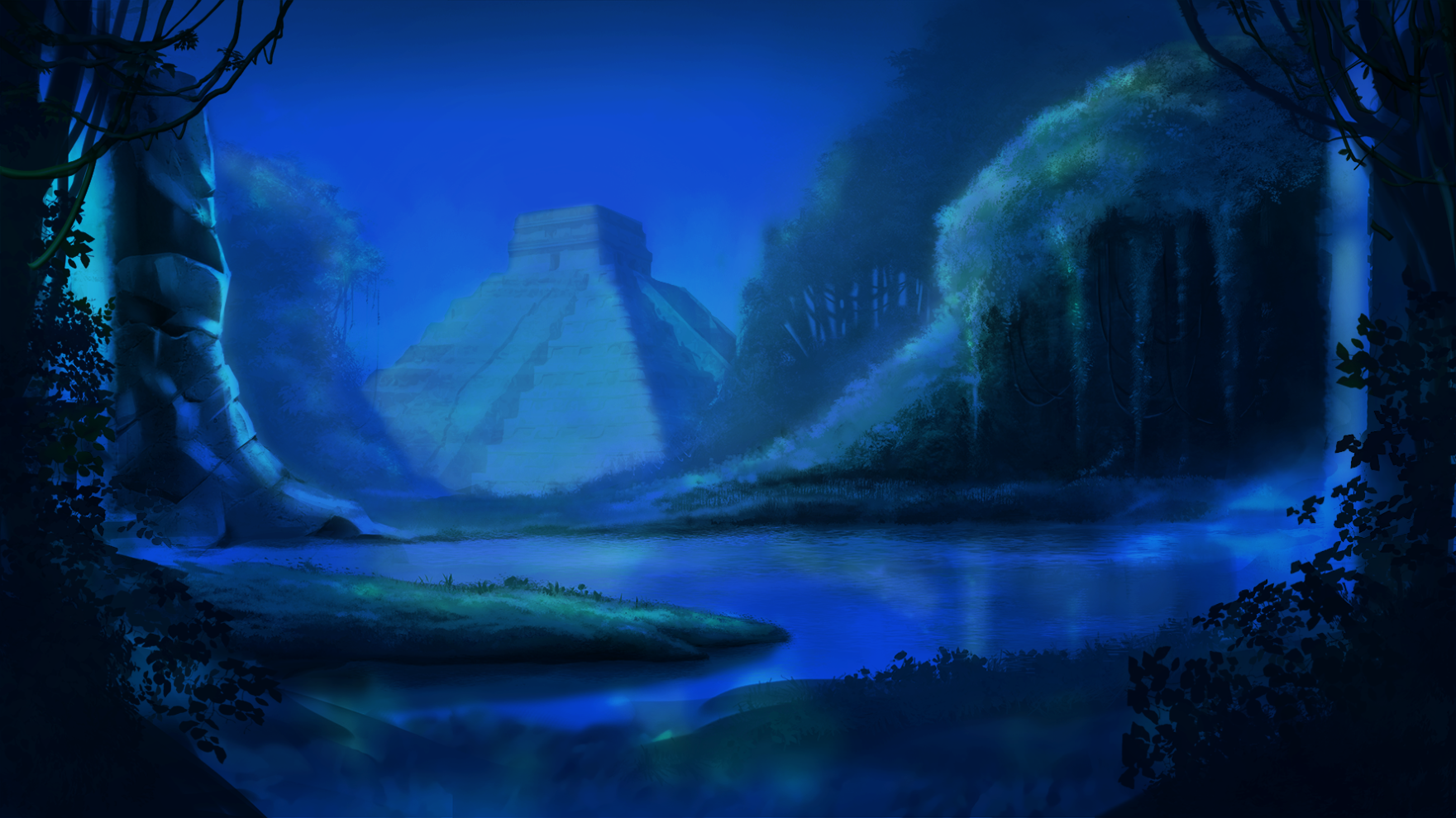 Los carretes y los símbolos de bonus son principalmente dorados. La noche en la selva amazónica se ve claramente en el fondo.
