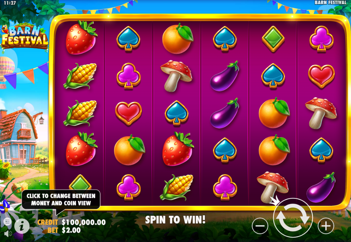 Barn Festival es una magnífica tragamonedas y ha sido diseñada para que los usuarios puedan convertirse en granjeros sin tener que salir de casa. Su desarrollo resulta intuitiva y su accesible menú te permite conocer de primera mano los apartados y características más importantes de este juego en línea.