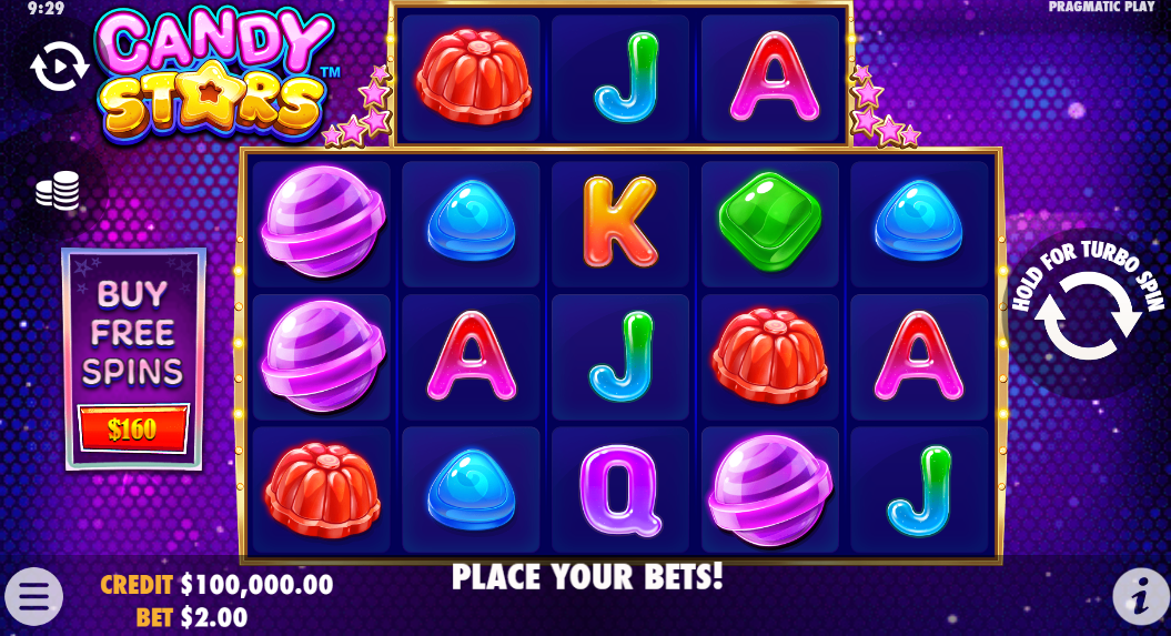 Candy Stars, que puede disfrutarse en un ordenador, un dispositivo móvil o una tableta, ofrece las mismas estadísticas fiables que los jugadores esperan de los títulos de Pragmatic Play. El estudio ha calificado la volatilidad como alta, y los ajustes de RTP oscilan entre el 94,31% y el 96.47%. Finalmente tiene un rango de apuesta de 20 monedas a 200 monedas por giro.