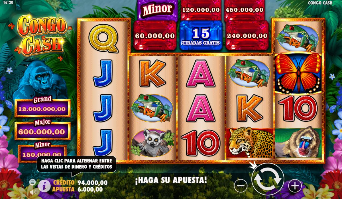 Los aficionados a las tragamonedas disfrutarán con Congo Cash de Pragmatic Play. Se trata de una máquina tragamonedas con temática africana, colores brillantes y criaturas salvajes como atracción principal. Si te apetece dar un paseo por la selva, Congo Cash es un juego que te hará disfrutar.