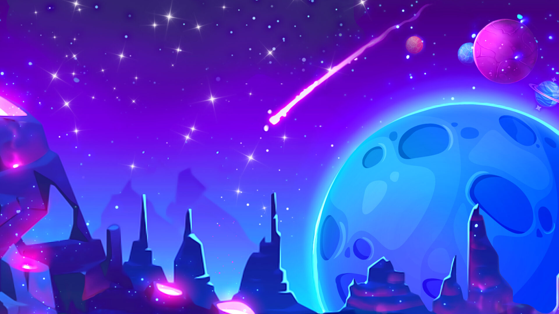 Los símbolos 9, 10, J, Q, K y A son los que menos pagan. Cinco símbolos iguales dan una ganancia de 1,25 veces la apuesta. Una pistola de rayos, una nave espacial, un alienígena dorado, una criatura parecida a un conejo, una astronauta y un alienígena verde son los símbolos que pagan más. Una nave espacial con el símbolo WILD pintado en ella sirve de comodín del juego, mientras que el logo sirve de scatter. Los símbolos de dinero que representan una luna dorada también pueden aparecer durante las tiradas.