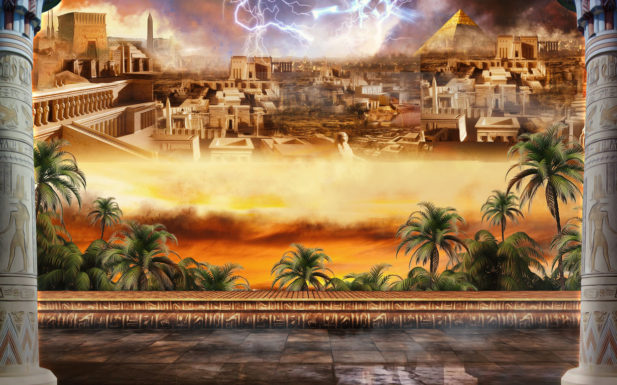 Reel Kingdom ha mejorado los colores marrones del original con efectos visuales más vibrantes. El juego está rodeado de pilares distantes, templos y pirámides. Esto no es el Antiguo Egipto tal y como lo conocemos. Los jugadores de esta región del mundo suelen experimentar un hermoso cielo, una cálida sensación de bondad y la impresión de estar navegando tranquilamente por el Nilo en una feluca mientras los granjeros trabajan en los campos. La atmósfera de Eye of the Storm es, con diferencia, el aspecto más creativo.