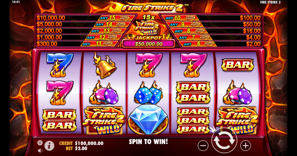 Además, si la pantalla se llena con 15 Firestrike Wilds, los jugadores ganan pueden recibir el pago máximo de 25.000x la apuesta.