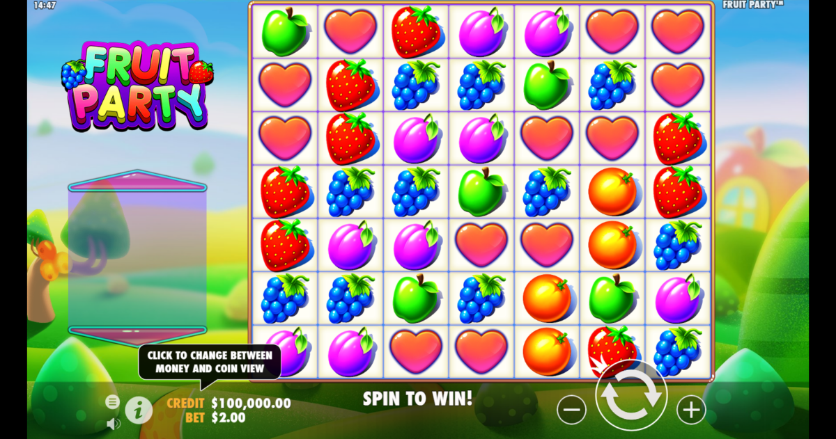 El juego tiene un motivo frutal, y detrás de los carretes hay un paisaje de gelatina verde. Los carretes de la tragamonedas llenan toda la pantalla en un diseño de cuadrícula de 7×7. Fruit Party es una opción maravillosa si estás buscando tragamonedas móviles online porque se puede jugar en dispositivos móviles, tabletas y ordenadores de sobremesa. Cinco o más del mismo tipo de símbolo en una agrupación es una agrupación ganadora.