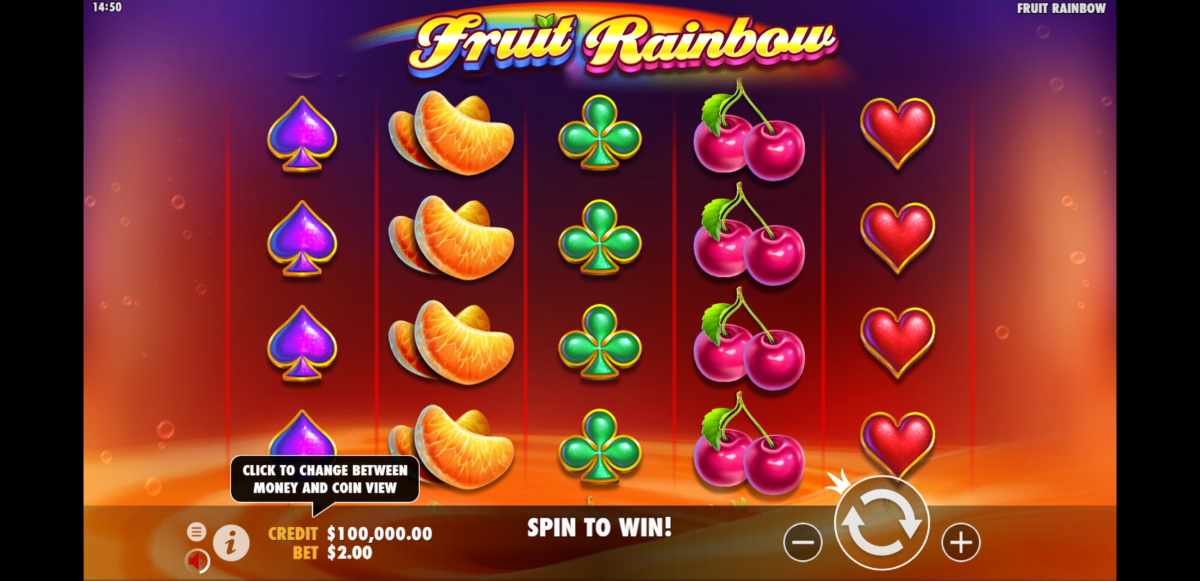 Puedes jugar a Fruit Rainbow ahora sin tener que hacer ningún depósito. Sin embargo, las ganancias sólo se pueden convertir en dinero real si se han apostado con dinero real.