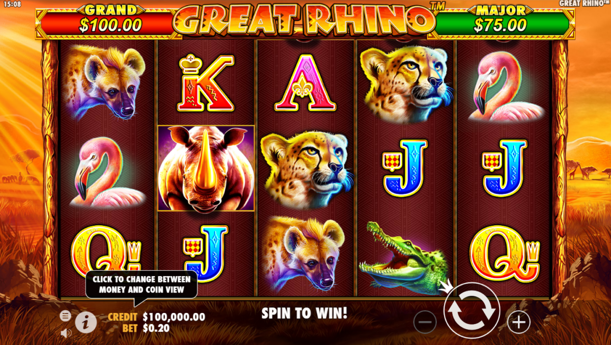 La mejor manera de jugar a Great Rhino por dinero real es en un casino online asociado a Pragmatic Play.