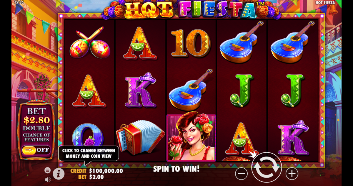 Hot Fiesta de Pragmatic Play es una tragamonedas de video de cinco carretes y 25 líneas de pago. Al igual que La apuesta mínima es de 0,25 y la máxima de 125. El Retorno al Jugador (RTP) del juego varía a través de sus muchos modos de jugabilidad. El retorno al jugador (RTP) es del 96,56% en el juego base y del 96,49% con la opción de compra de bonus.