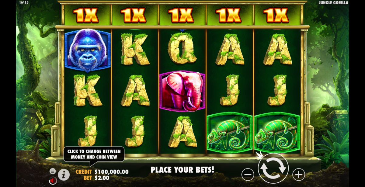 Visualmente, se asemeja mucho a la tragamonedas Gorila Mayhem. Sin embargo, tras unas pocas tiradas, las dos tragamonedas empiezan a moverse en direcciones diferentes. A diferencia de otros juegos más complejos, Jungle Gorilla se basa en una única mecánica para enganchar al jugador.