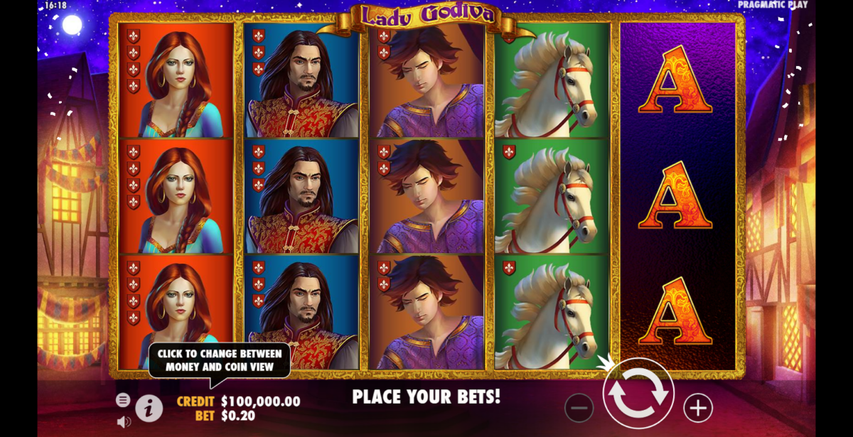 Lady Godiva es la prueba de que Pragmatic Play siempre ha priorizado la diversión de sus jugadores por encima de todo. Al igual que en Beowulf, imagina una calle de pueblo iluminada por la luz de la luna de fondo. La barra de comandos se encuentra en la parte inferior de la pantalla. Esto anterior, facilita a los usuarios ajustar la configuración a su gusto.