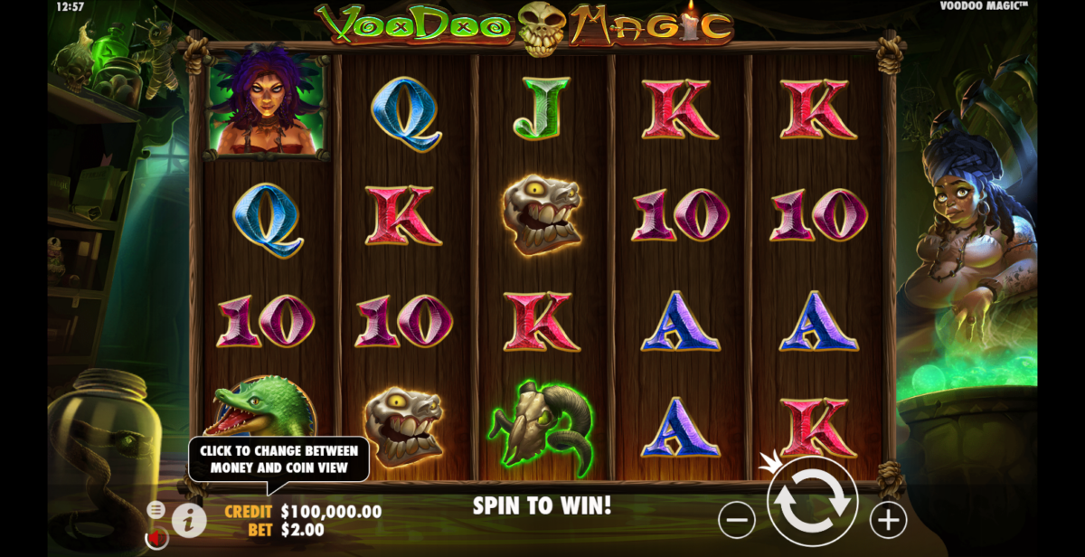 Una sacerdotisa vudú es el personaje principal de Voodoo Magic de Pragmatic Play, que tiene un aire siniestro e inquietante. Los símbolos del juego ofrecen una variedad de criaturas espeluznantes, dándole un aspecto intrigante. Si te gusta el diseño visual de juegos como Ancient Egypt, entonces esta tragamonedas te gustará porque ofrece gráficos con el estilo distintivo de Pragmatic Play.