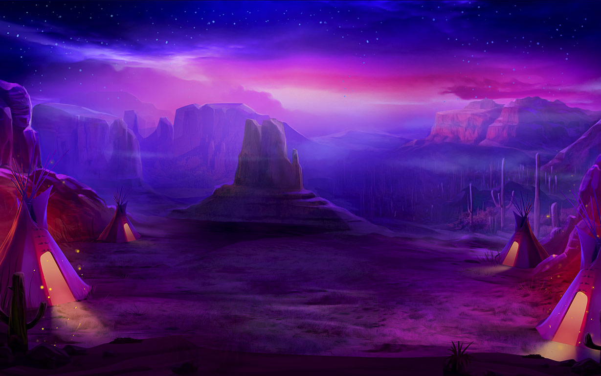 El estilo visual del juego se basa en una tribu nativa americana, en la que el jugador trabaja junto a ellos para amasar riquezas. Detrás de los carretes, iluminados por un brillo púrpura y tiendas tipi, se representa una noche mágica en la que se ven caer muchas estrellas. Es una tragamonedas que funciona con PC, Mac, iPad y smartphones. Tres o más símbolos idénticos en cualquier lugar de los carretes adyacentes, empezando por la posición más a la izquierda, darán lugar a un pago.