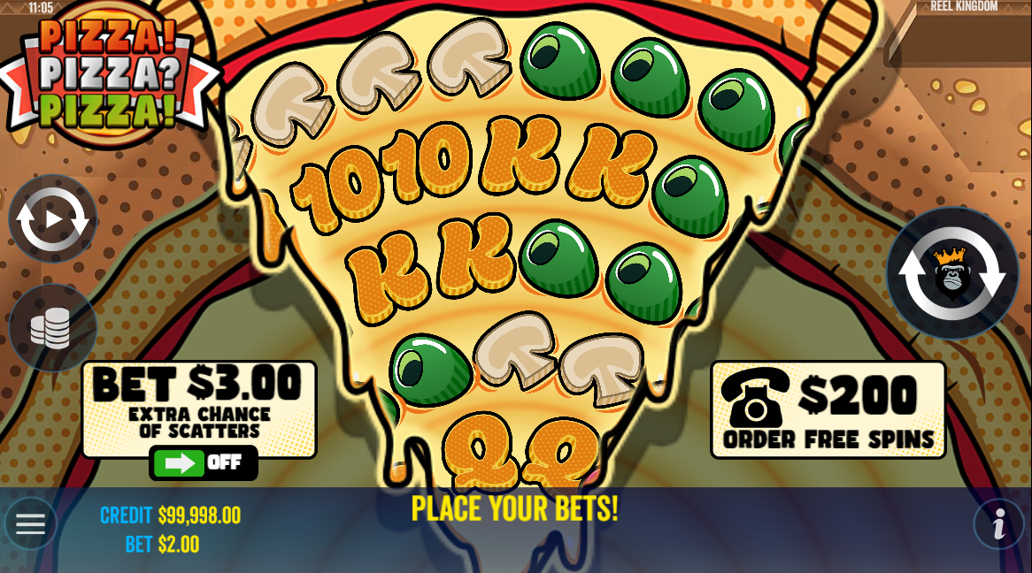 La cuadrícula del juego en Pizza, Pizza, Pizza tiene forma de rebanada, con un patrón 2-3-4-5-6 en el que los símbolos pagan de izquierda a derecha en modo vertical o de abajo a arriba en modo horizontal. Pizza, Pizza, Pizza es una de los juegos más entretenidas de la colaboración entre Reel Kingdom y Pragmatic Play. Tal vez las agradables vistas puedan atribuirse al encanto natural de la pizza. Otra cosa que ayuda es escuchar una melodía alegre, y toda la experiencia sensorial de Pizza, Pizza, Pizza es positiva.