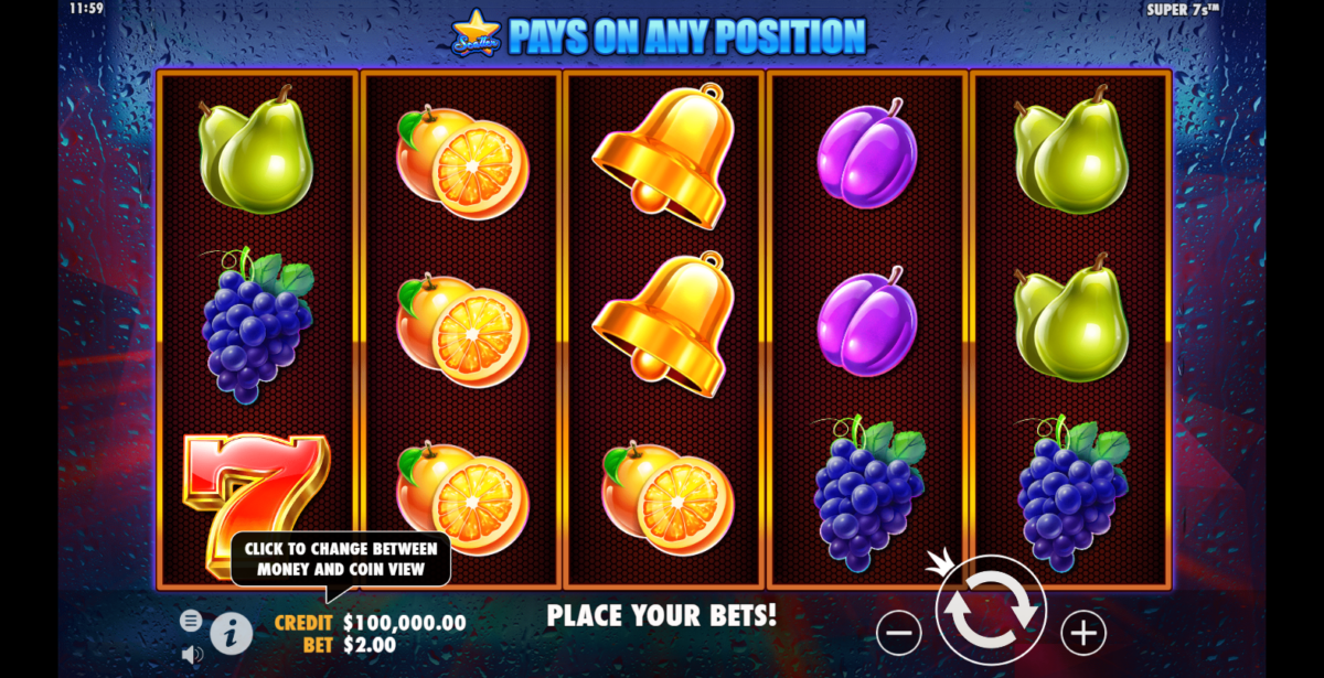 Con cinco carretes, tres filas y cinco líneas de pago, la tragamonedas de video Super 7s de Pragmatic Play es una maravilla para jugar.