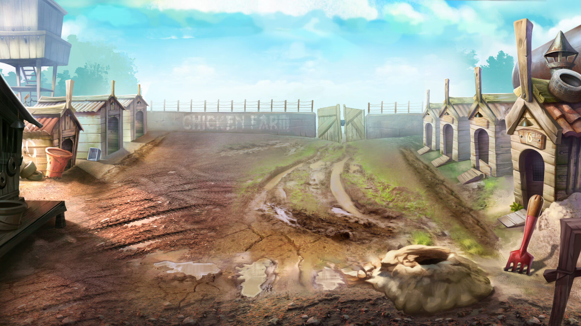 Afortunadamente, la historia está representada con imágenes de dibujos animados y tiene lugar en lo que sólo puede caracterizarse como un campo de concentración para gallinas. Los símbolos de bajo valor están representados por las figuras de cartas de la A a la J en los carretes, que tienen como telón de fondo hileras de gallineros. Las cuatro figuras de gallinas son más lucrativas, y la que lleva la boina roja paga 25 veces la apuesta por una combinación de 5 en una línea de pago.