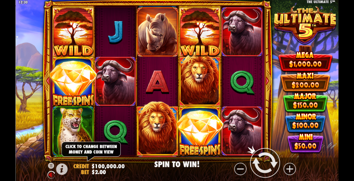 Hay animales animados y hierbas de fondo, que representan una típica sabana africana, al igual que Great Rhino. Escuchar versiones actualizadas de música tribal tradicional es otra opción a disposición de los usuarios. La inclusión de contenido extra es otra cualidad destacada de este producto. Infórmate sobre los giros gratis, el superimpulso hold & spin y otras características de la tragamonedas The Ultimate 5 leyendo esta reseña hasta el final.