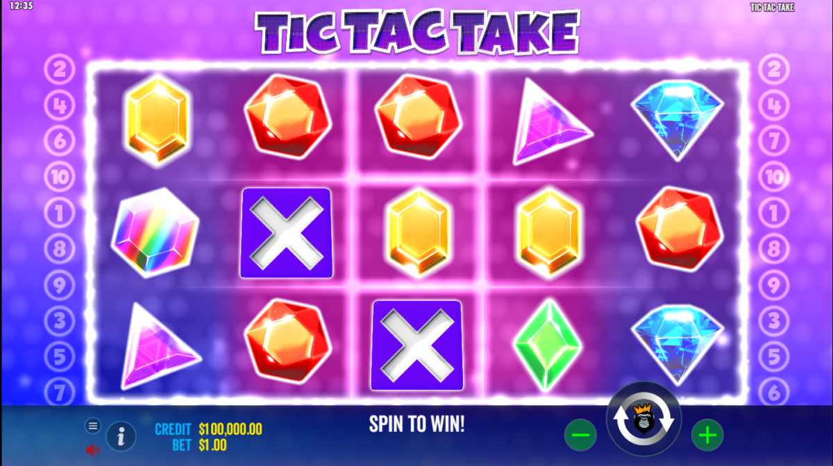 Tic Tac Take llegó para los clásicos jugadores de tragamonedas virtual. Esta viene con encantadores y maravillosas gemas de muchos colores que iluminarán sus ojos. El único movimiento que tiene que hacer es dar clic para empezar con esta aventura llena de luces brillantes y premios únicos.