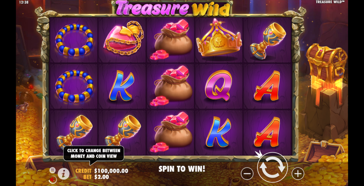 Treasure Wild es una tragamonedas de cinco carretes de temática aventurera de Pragmatic Play. Apueste de 0,20 a 100 monedas por giro y obtenga los premios de giros gratis progresivos, grandes combos ganadores y la función de recogida de dinero.